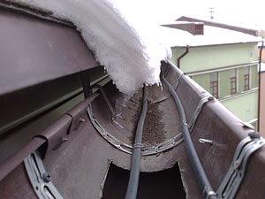 Обогрев желобов и крыши, лучше делать до первых морозов, чтобы успеть спасти водостоки от наледи, что спасет их от деформации.